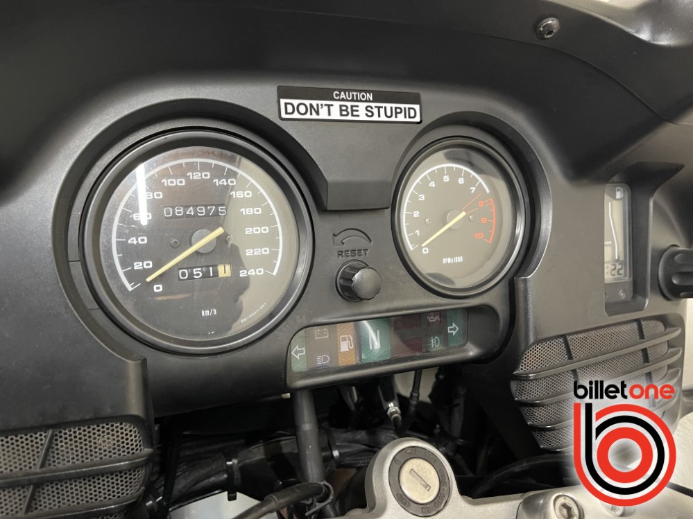 A funny but useful motorcycle warning sticker for your fuel tank, helmet or fairing.